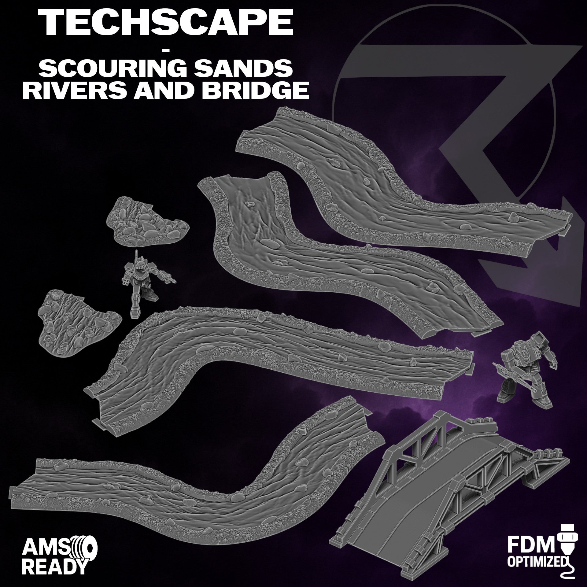 The TECHSCAPE Scouring Sands file set is ideally suited to supplement the foldable paper terrain included in the new BT Aces box set, allowing you to utilize all the included gameplay scenarios with full dimensional accuracy.